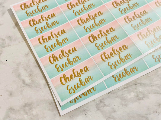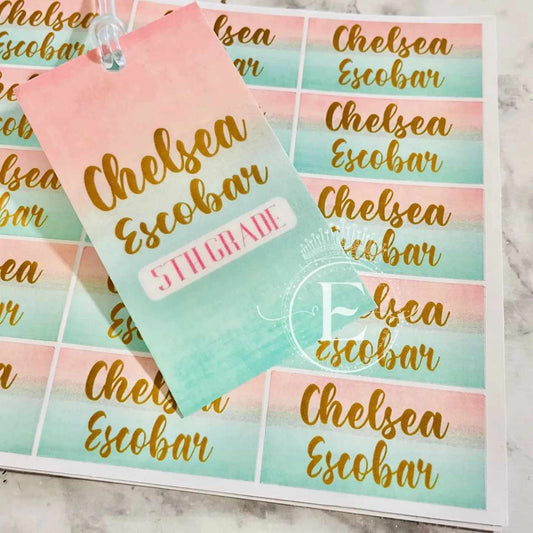 Gradient Pink and Aqua School Supplies Labels & Backpack Tag