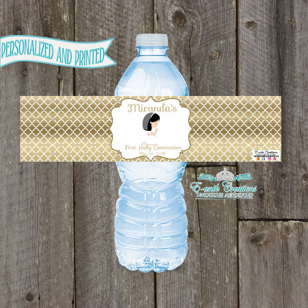 Personalized water bottle labels are the perfect addition for your first communion party.