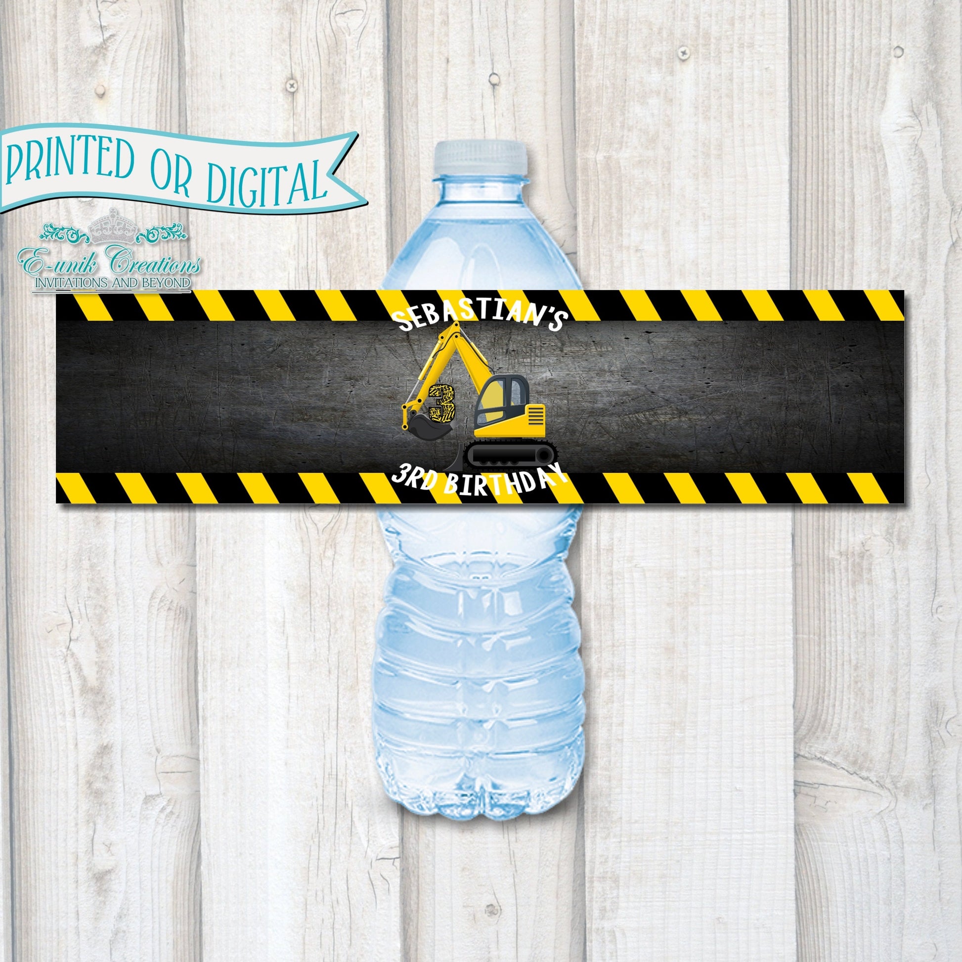 Construction Labels, Construction Party, Water Bottle Wrappers