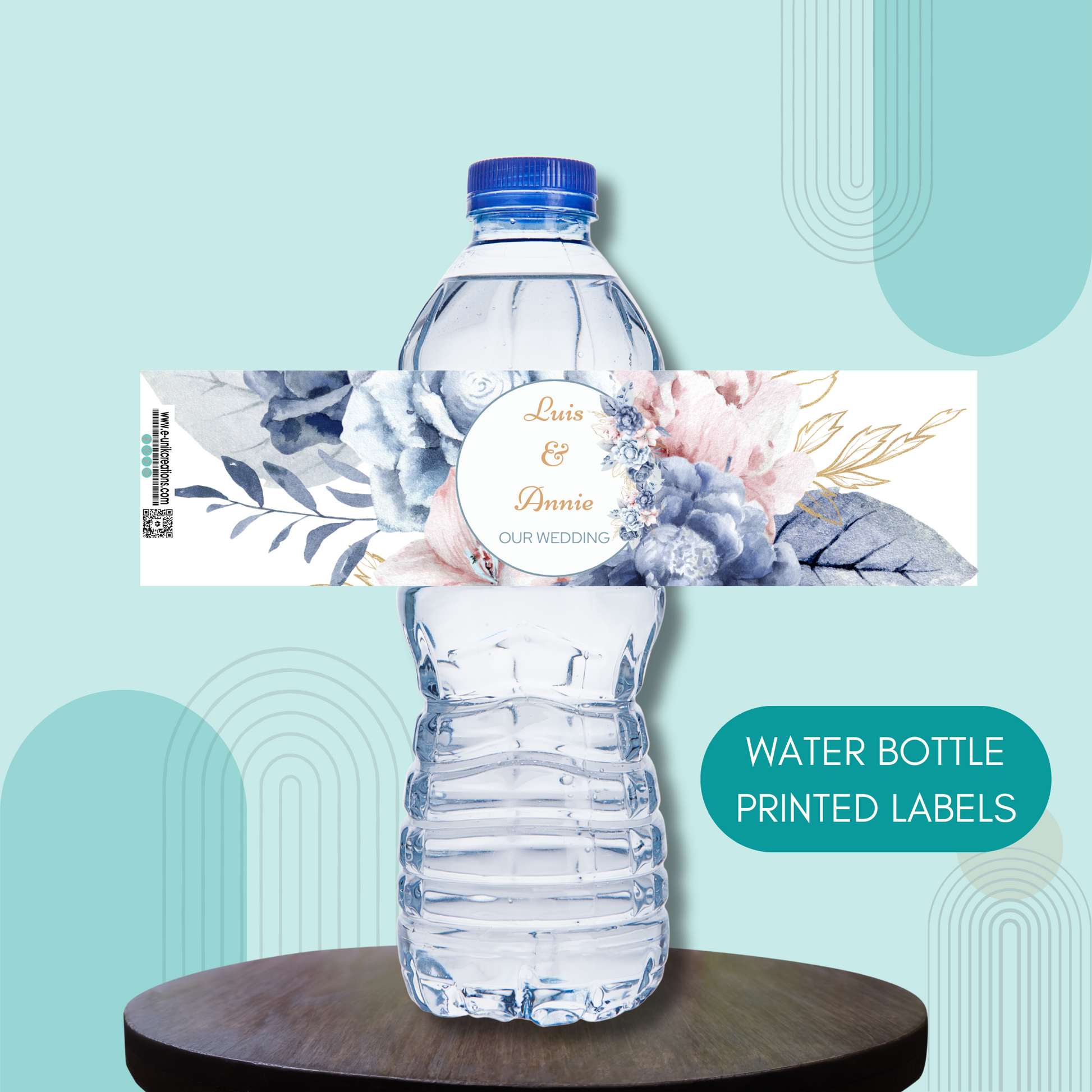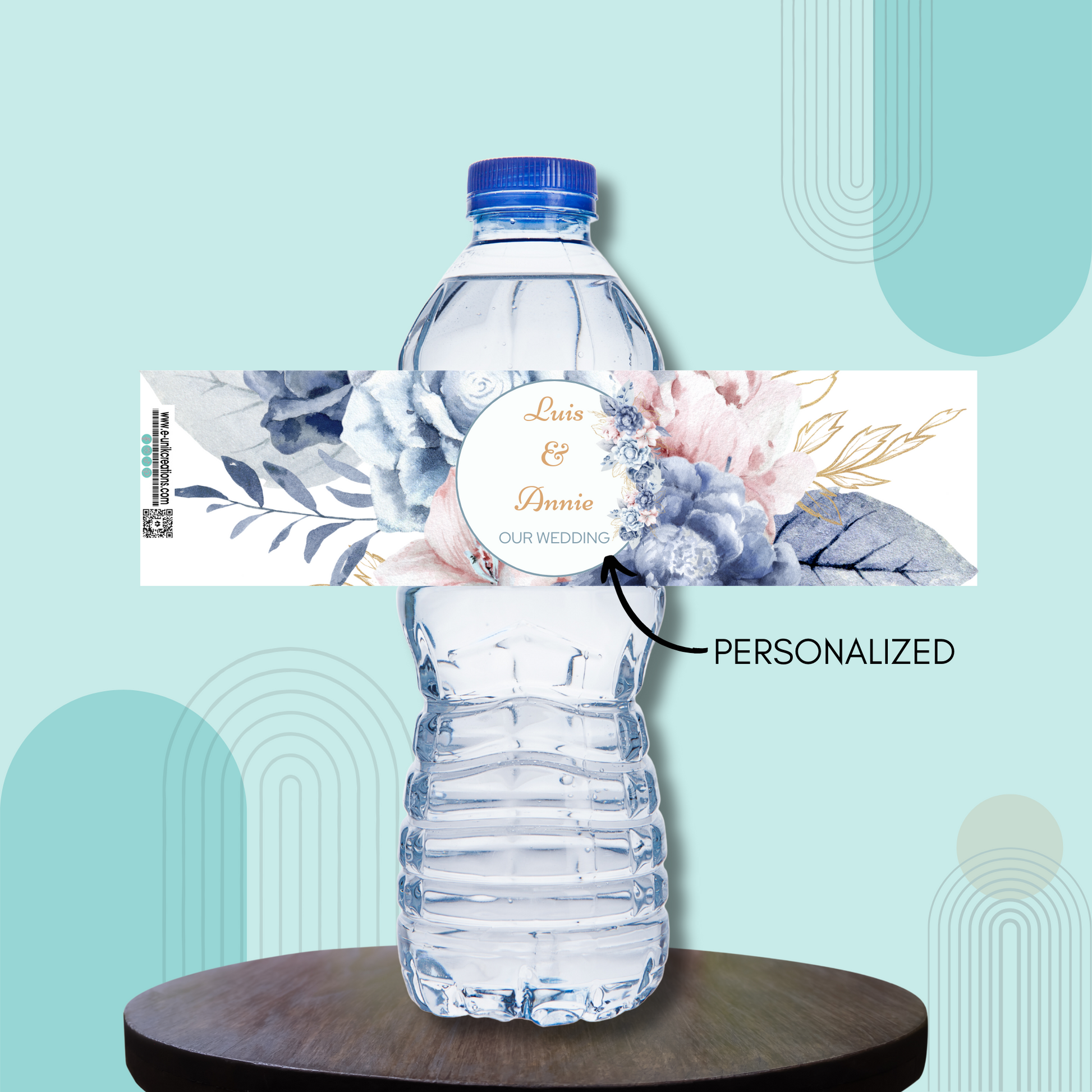 Elevate your wedding with these Dusty Blue and Blush Water Bottle Labels. Personalize your special day with floral details and add a touch of elegance to your event. Keep your guests hydrated in style, making it a day to remember.