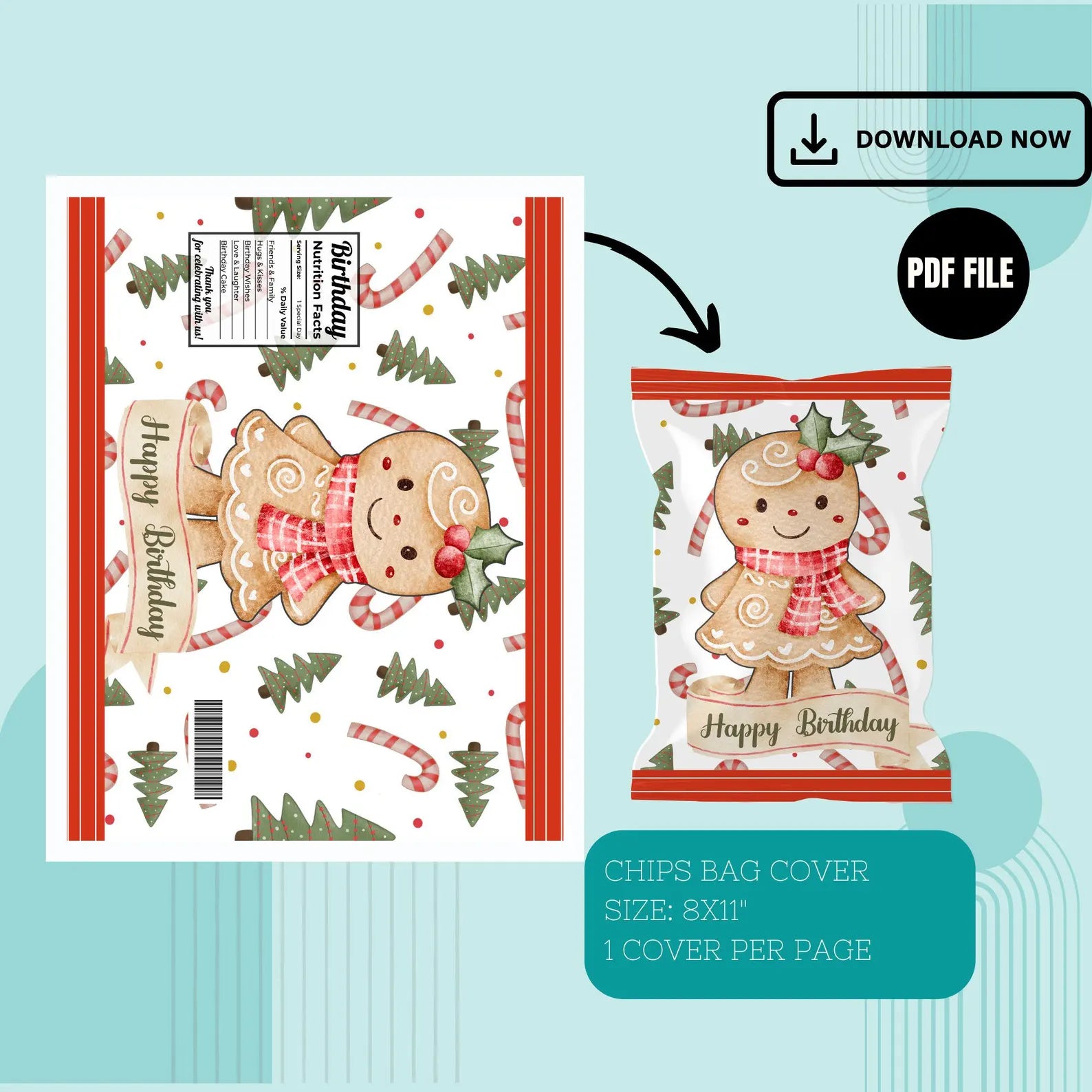 Gingerbread Girl Chip Bag Cover PDF Instant Download File | Winter Holidays Celebration
