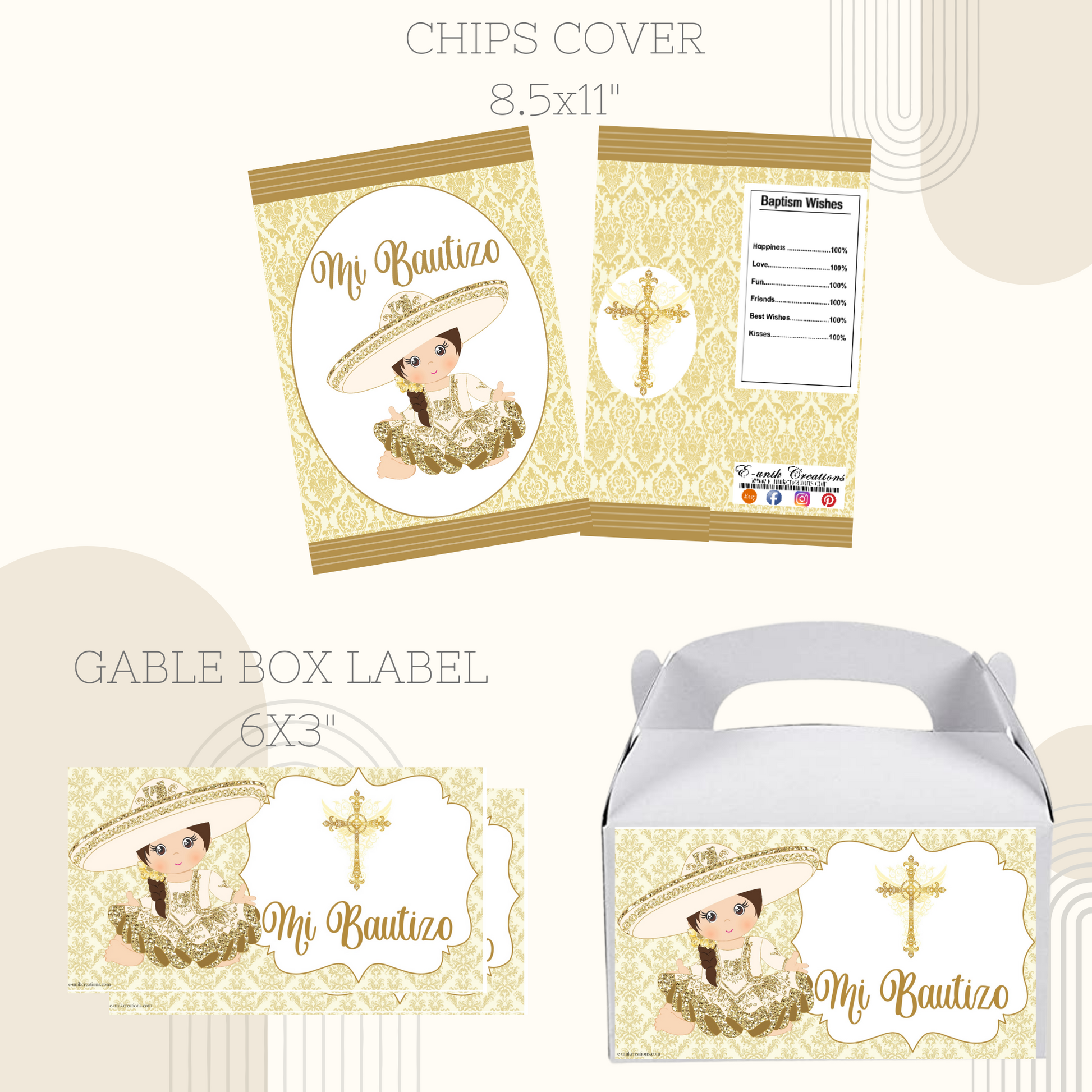 Make your child's baptism celebration extra special with our Gold Charrita-themed party supplies! This downloadable PDF package includes everything you need to create a festive and memorable event.