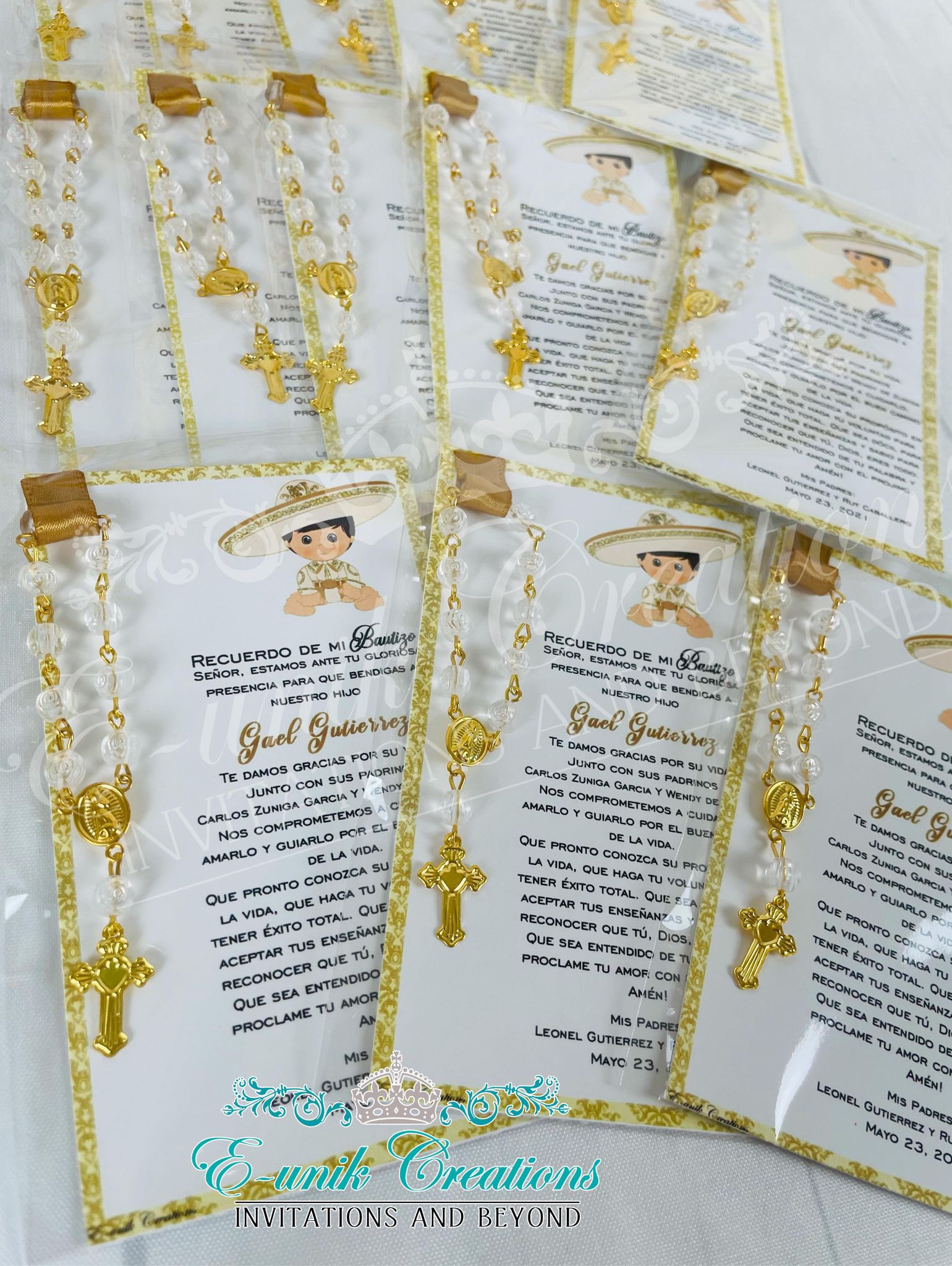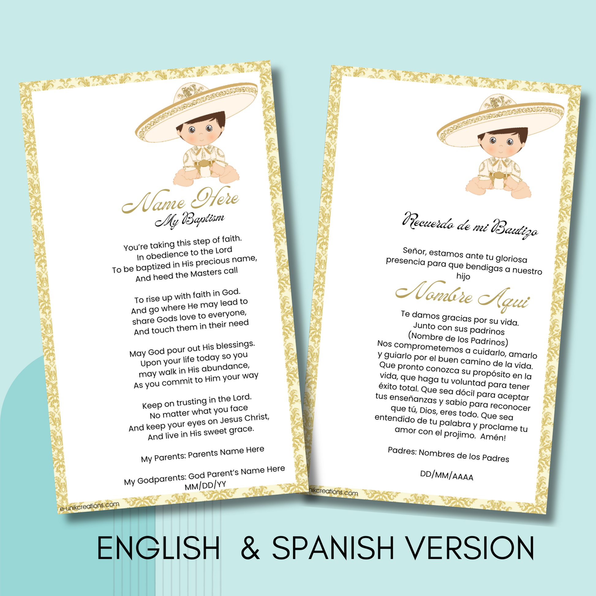 Create memorable thank you cards with ease and style. Add to cart now and start personalizing your Gold Charrito Prayer Cards today!