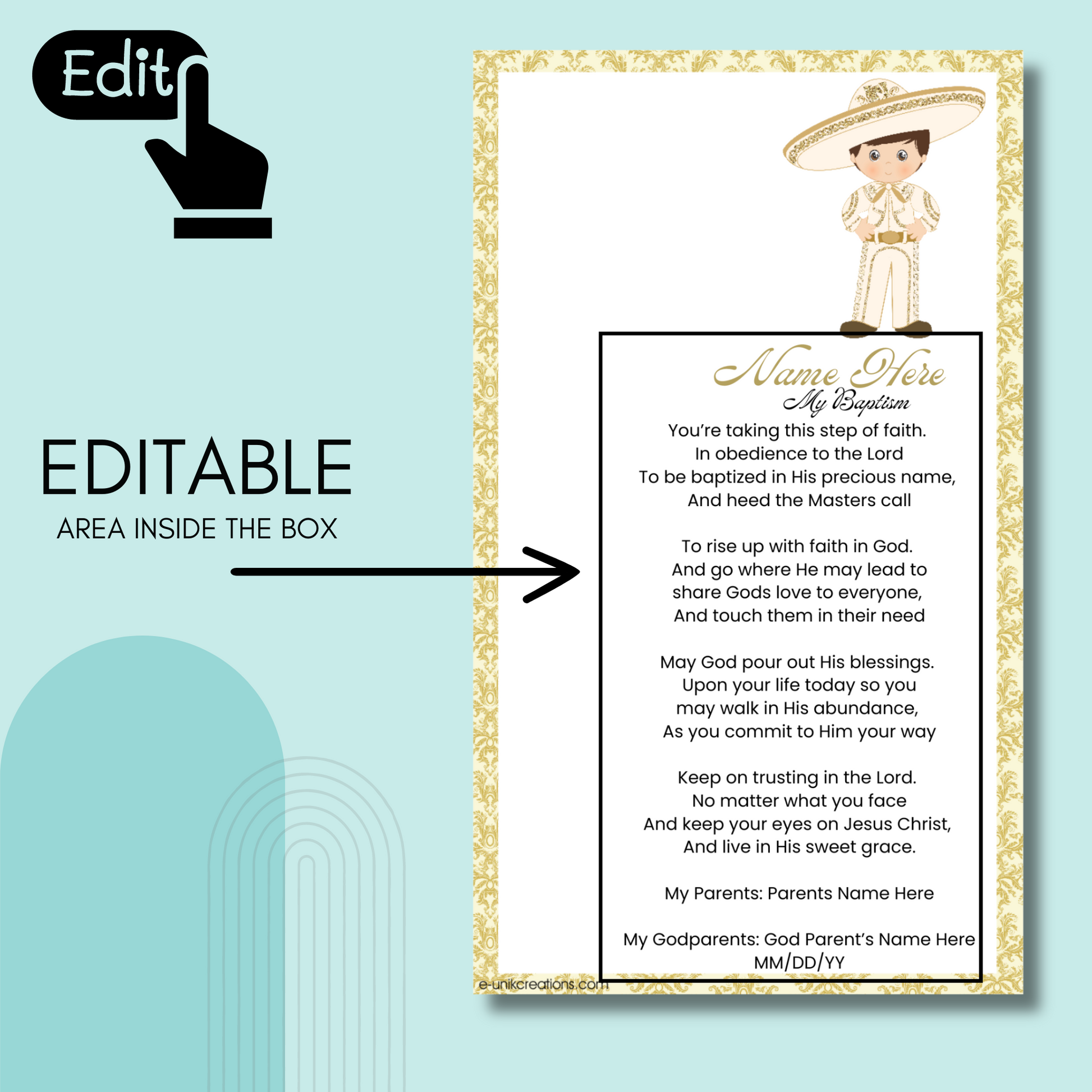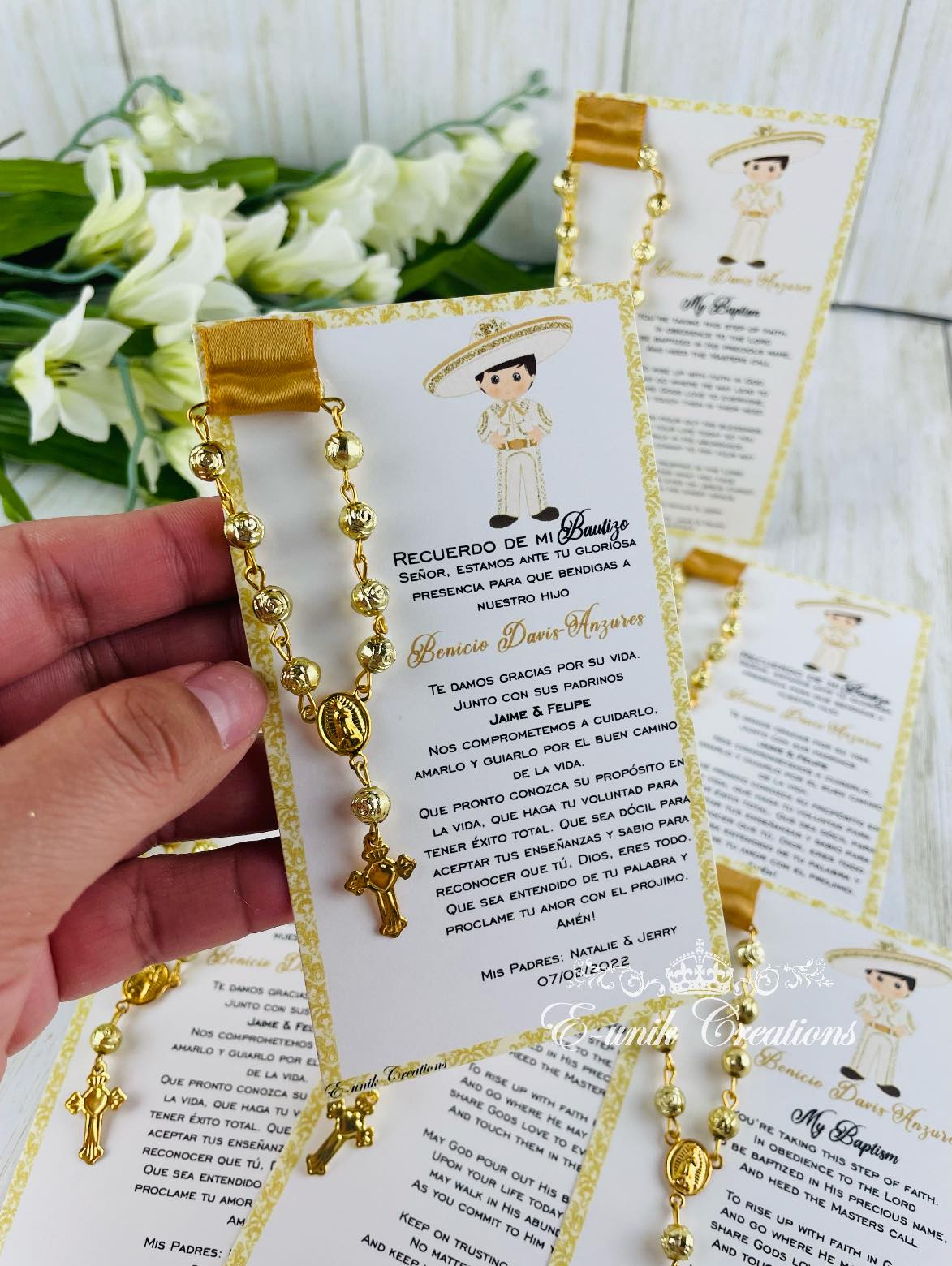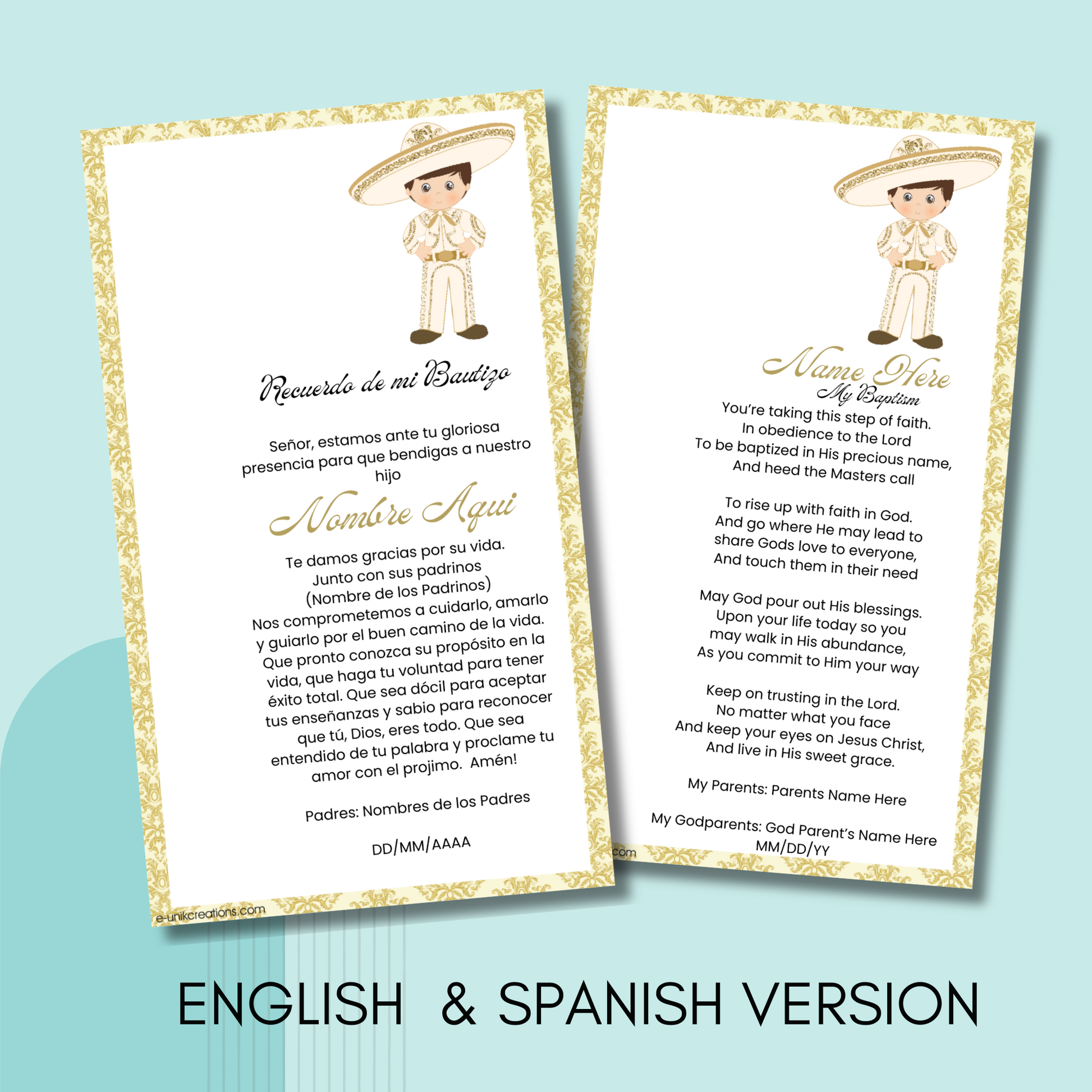 Create memorable thank you cards with ease and style. Add to cart now and start personalizing your Gold Charro Prayer Cards today!