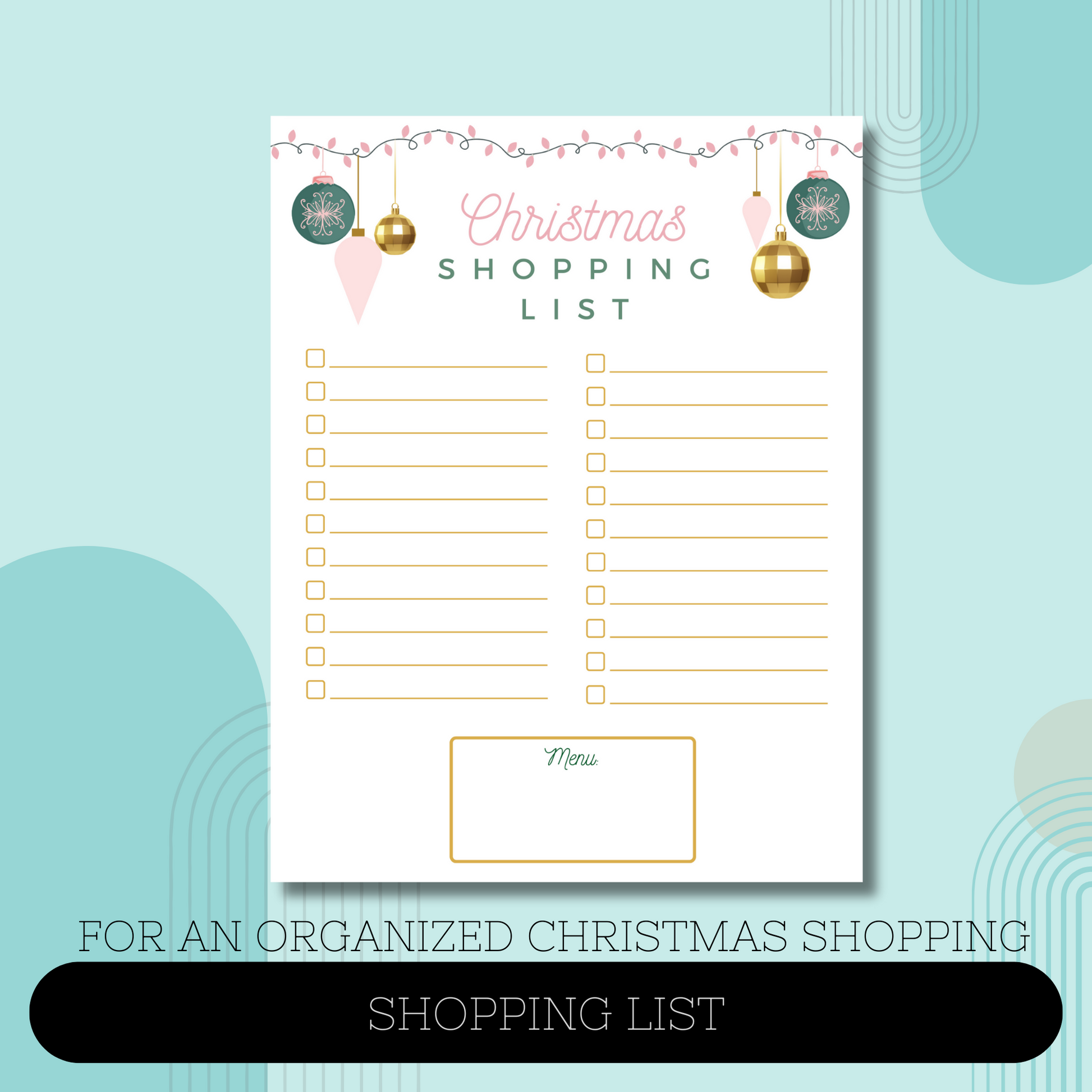 Shopping List Page: Manage your holiday shopping efficiently! Organize gifts, track your budget, and ensure no one on your list is left out.