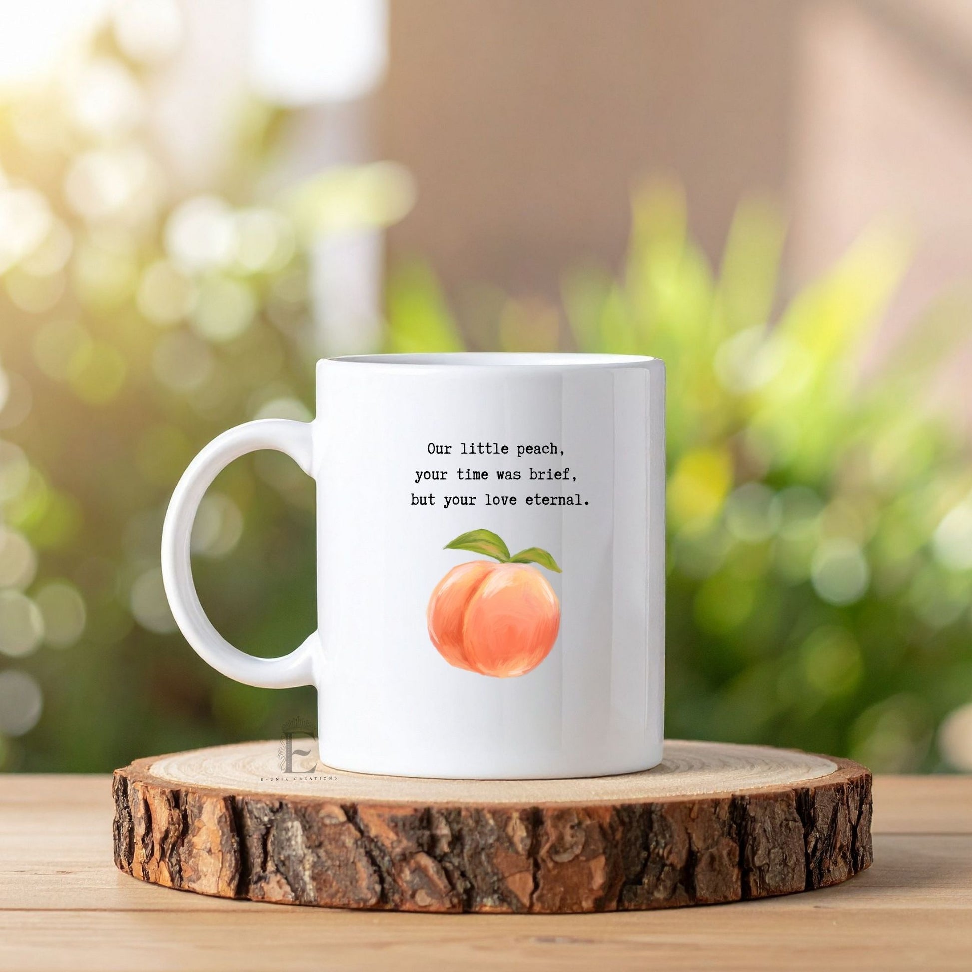 Honor the precious memory of your little one with this heartfelt Pregnancy Loss Memorial Mug from the "Fruit of Love" Collection by E-unik Creations. Designed as a meaningful keepsake, this personalized mug features a delicate fruit illustration that represents your baby’s size at the time of loss, paired with a gentle, comforting message. It’s a beautiful reminder that even the smallest life leaves an everlasting impact — your love and memory are immeasurable.