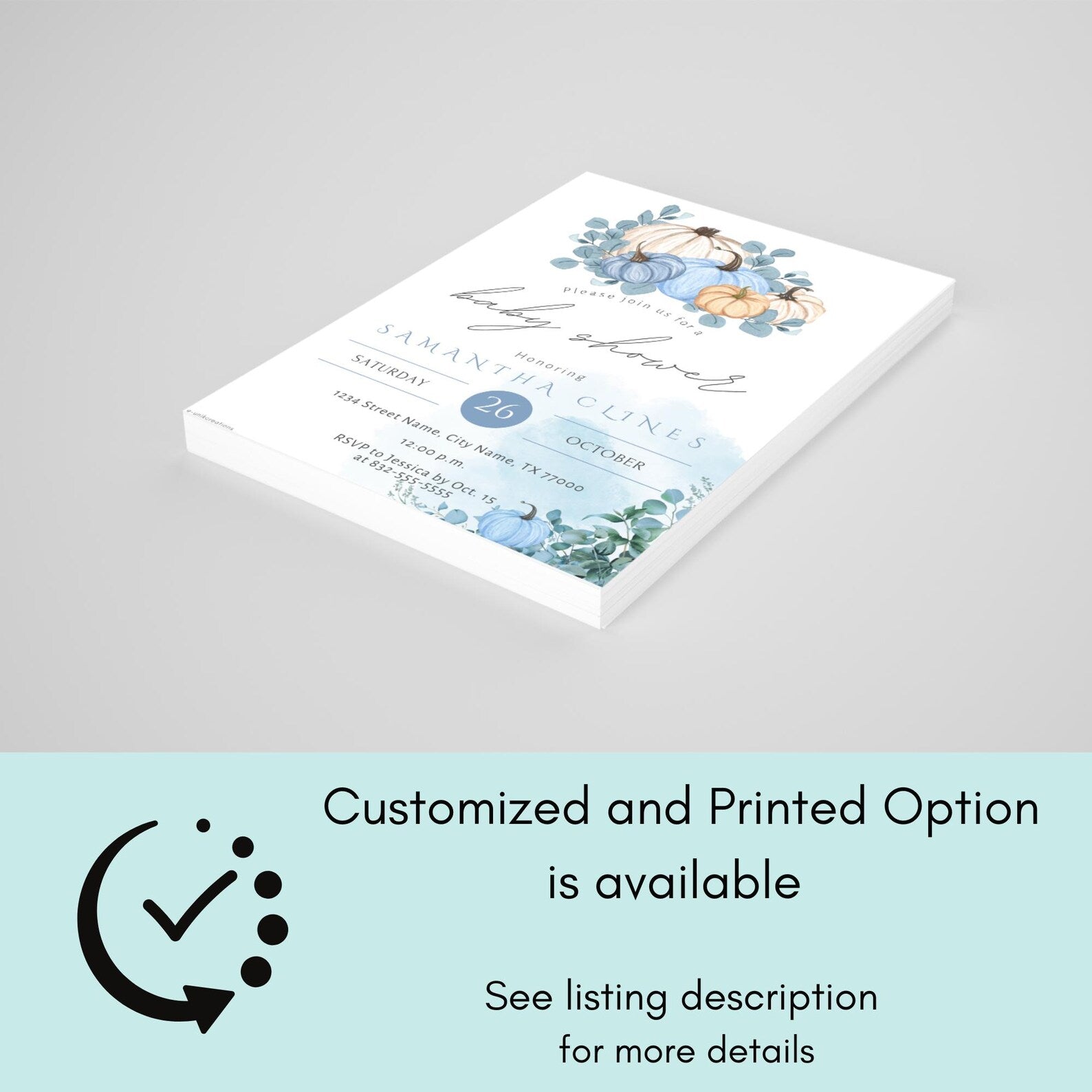 Pumpkin Boy Baby Shower Invitation Canva Editable Template: Blue Watercolor Pumpkin Fall Invite