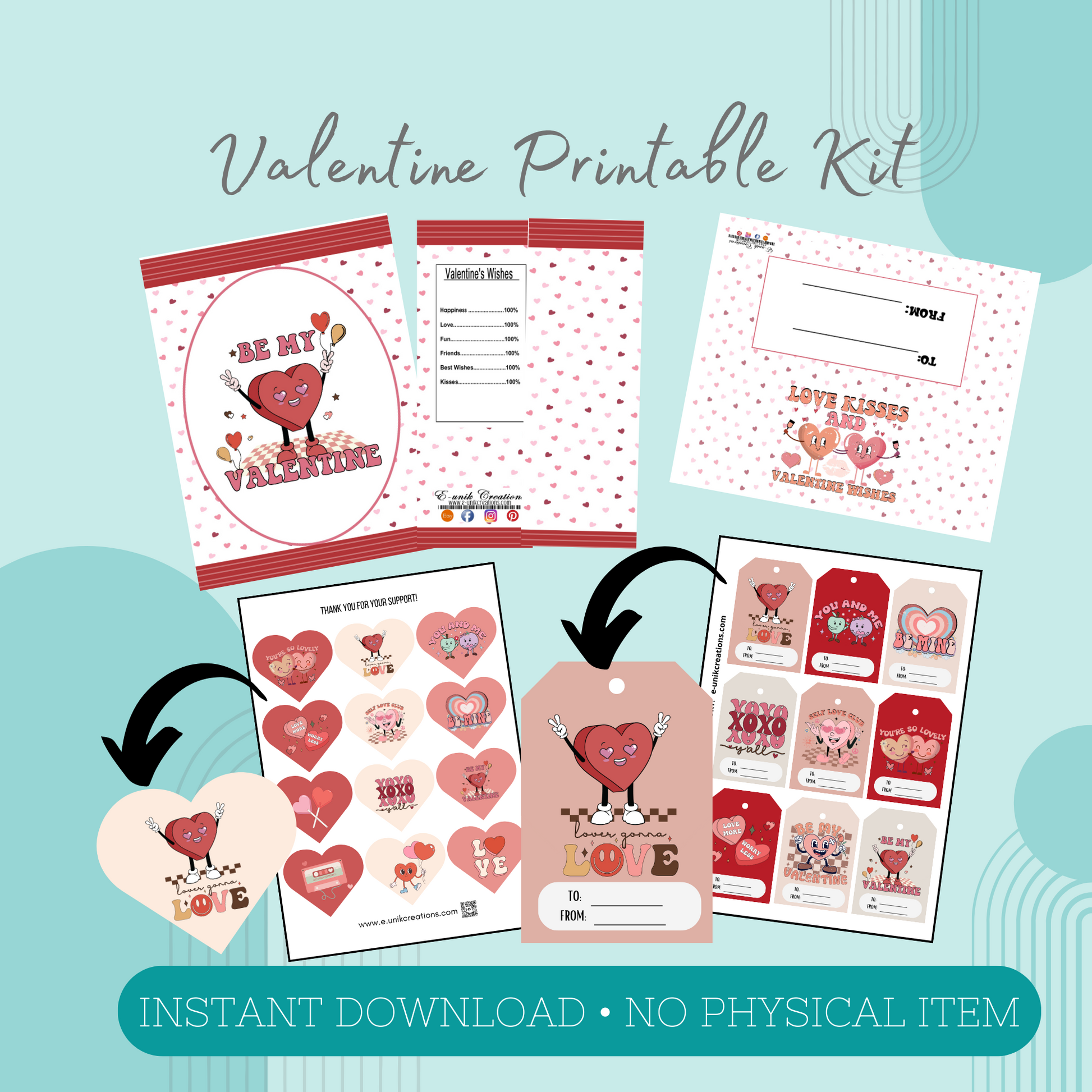 Make your Valentine extra special with this Retro Valentine-themed printables! This downloadable PDF package includes everything you need to create a cute and cool Valentine treats