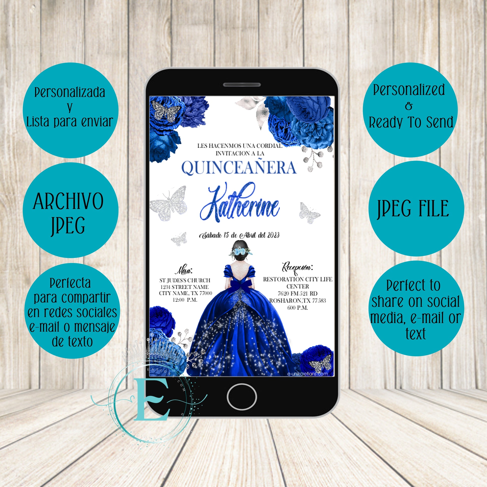 Spread your quinceanera joy with this awesome digital invitation! A beautiful style and sophistication that will invite your guests in style. Celebrate with this one-of-a-kind butterfly quinceanera invite.