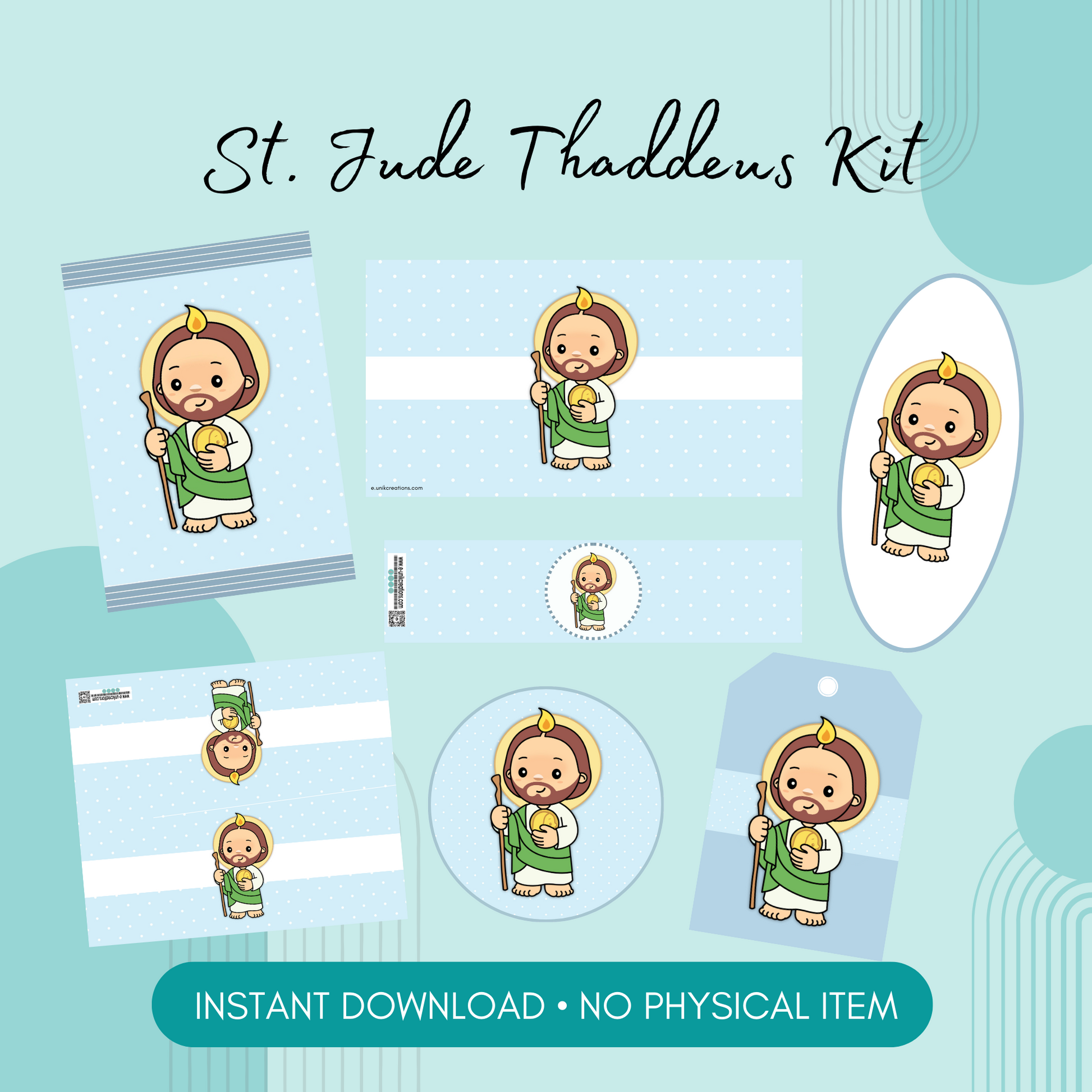 Celebrate your child's baptism or first communion with this St Jude Thaddeus Printable Kit. This cute party kit includes everything you need for a memorable and fun-filled event. Impress your guests and make the occasion truly special with our kit.