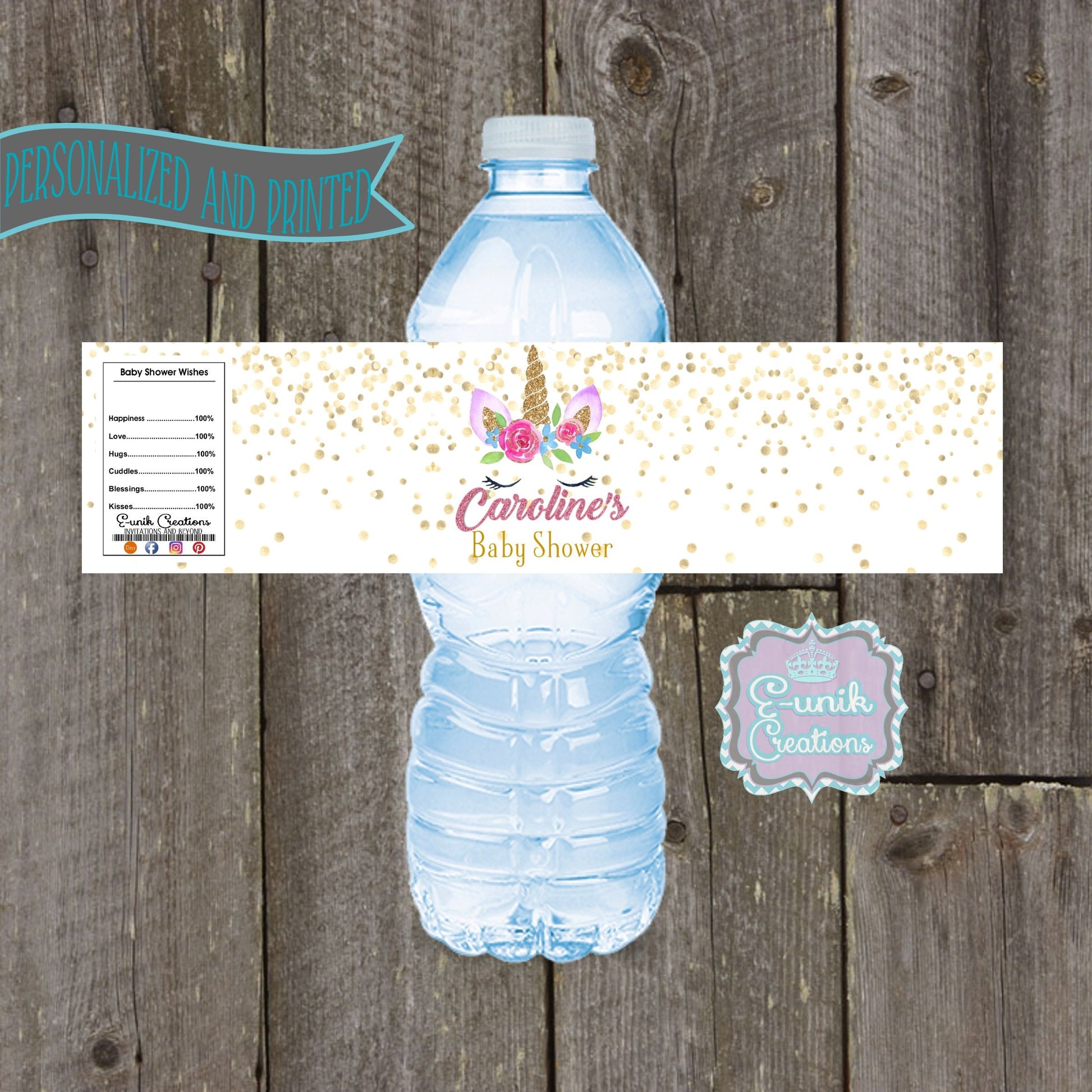 Unicorn Water Bottle Labels, Magical Party Wrappers