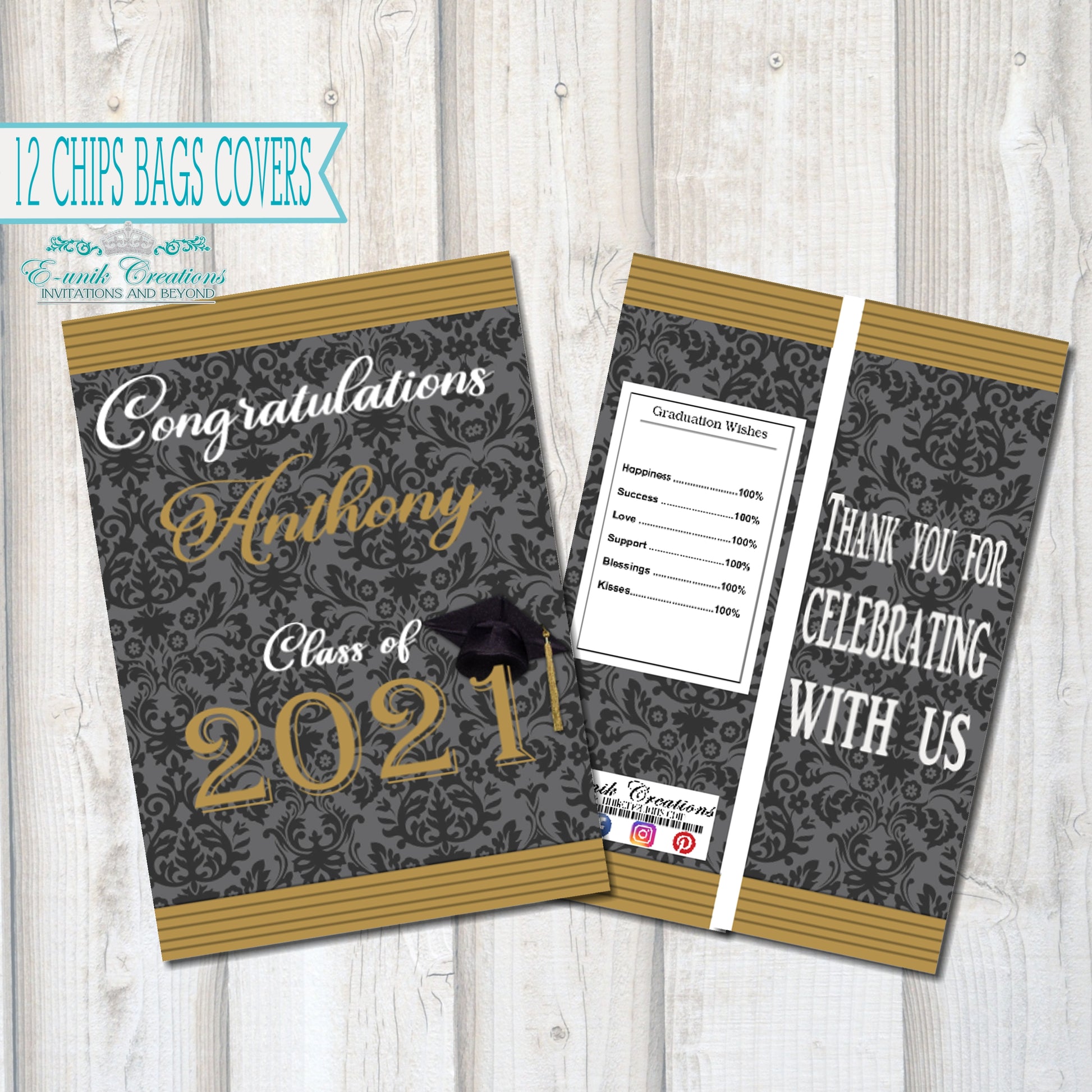Give a total personalization to your Graduation event with these awesome printed chip bags. Fill them with sweet treats, chips or fun goodies.