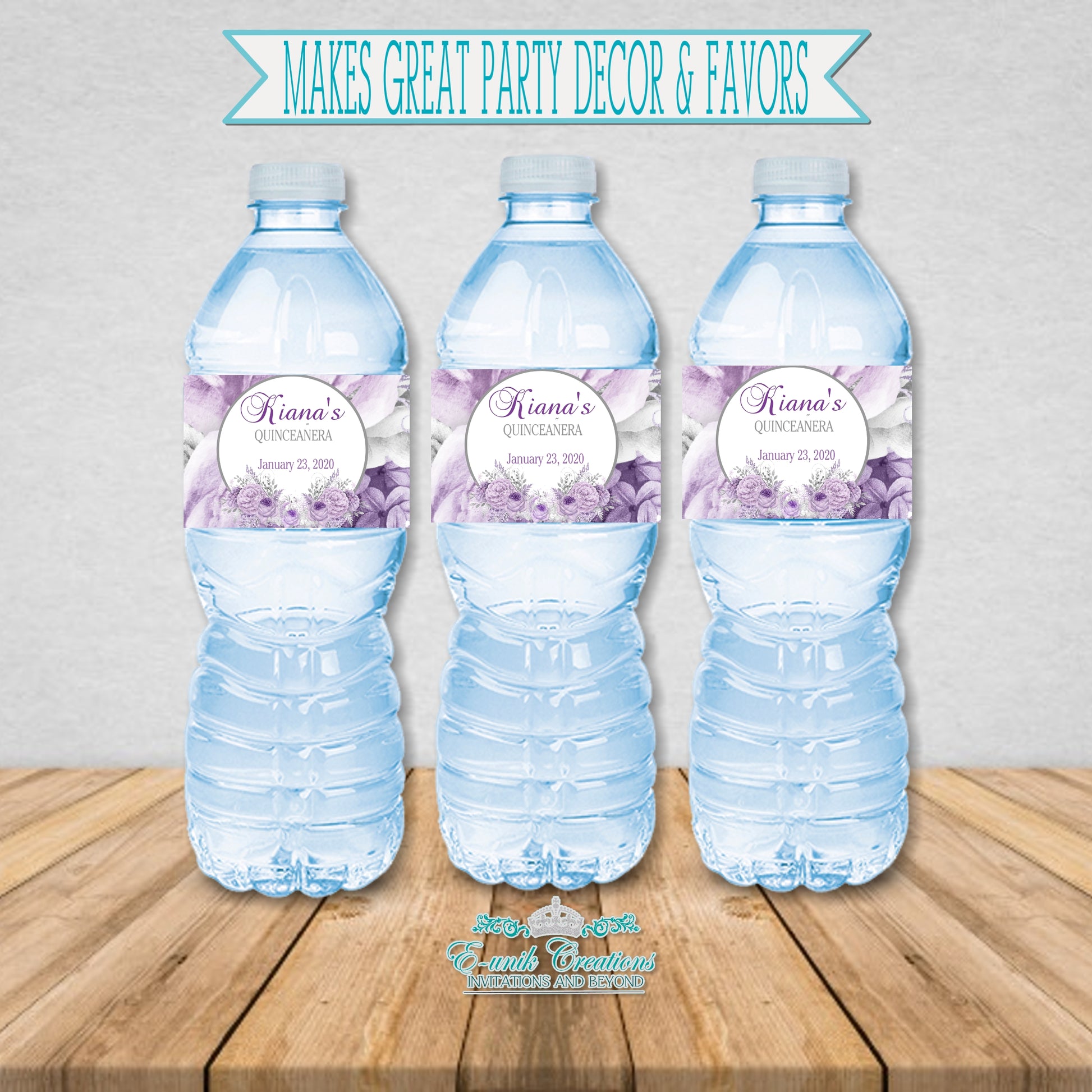 Personalized water bottle labels are the perfect addition for any party. They will add a personal touch to any occasion: bridal showers, weddings, birthday celebrations and more!